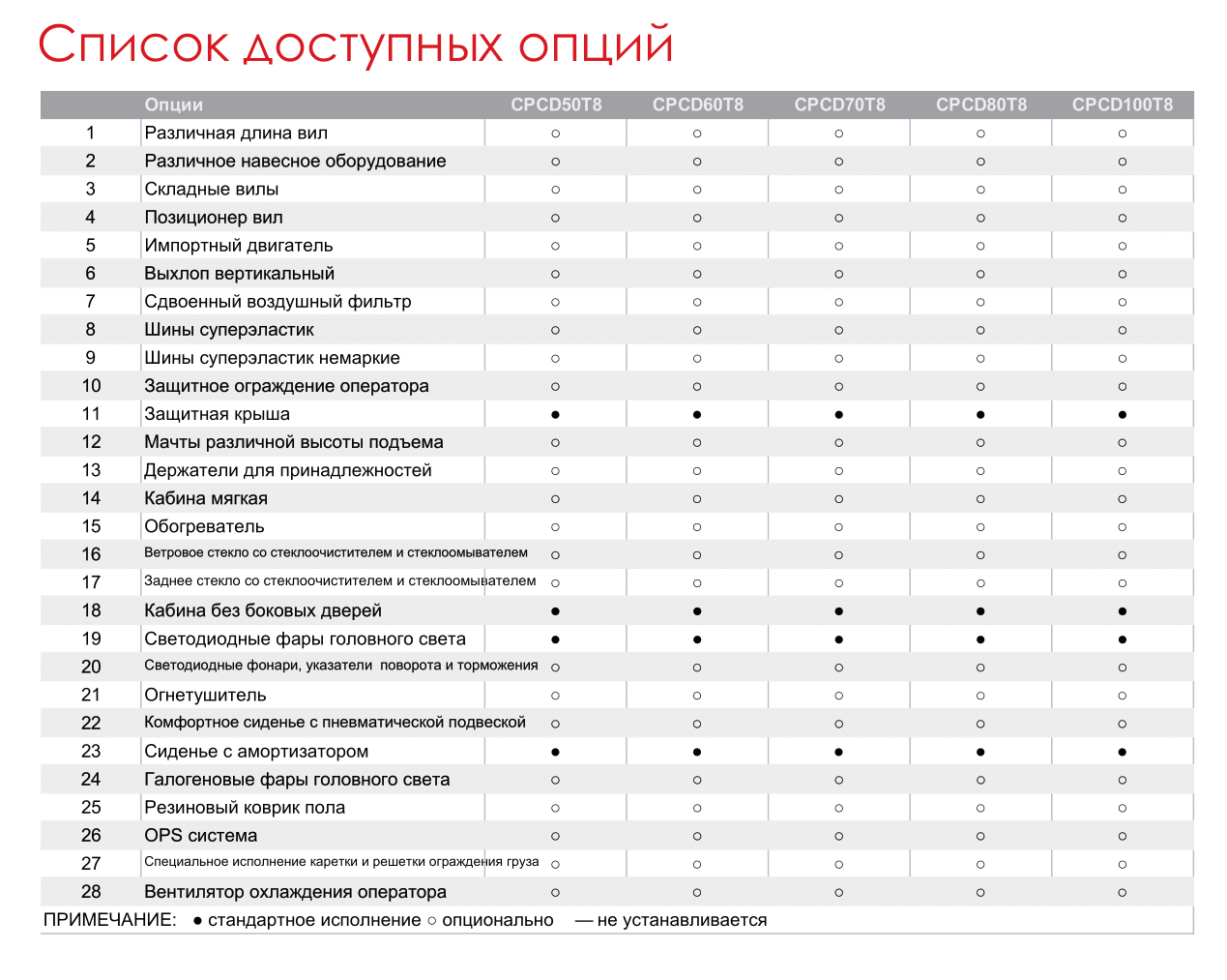 Серия CPCD T-8 – это надежное и эффективное решение для производственных и складских задач, сочетающее функциональность, комфорт и экономичность. Эти погрузчики станут ценным активом для предприятий, стремящихся повысить производительность и оптимизировать затраты.