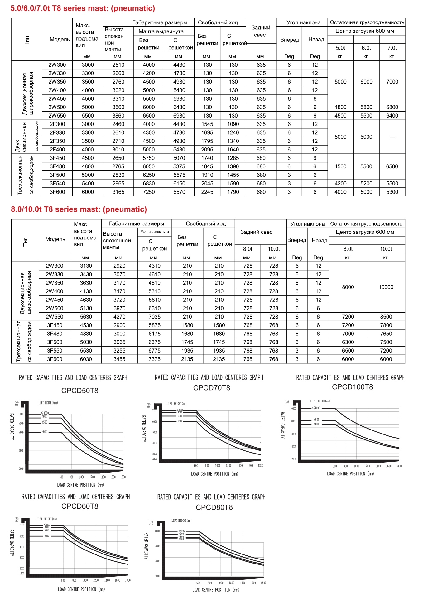Варианты мачтПогрузчики серии T-8 предлагаются с двумя типами мачт: