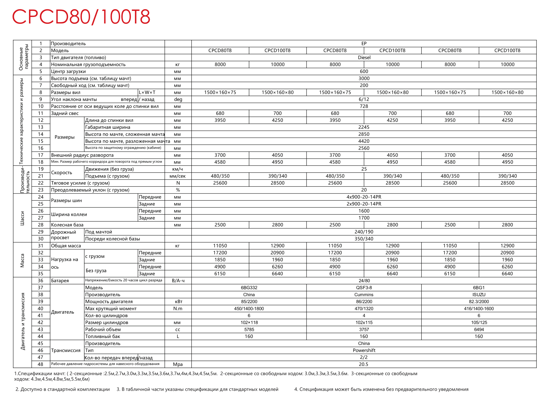 Серия дизельных погрузчиков CPCD T-8Серия CPCD T-8 представляет собой дизельные погрузчики премиум-класса, которые могут оснащаться как китайскими, так и японскими двигателями.