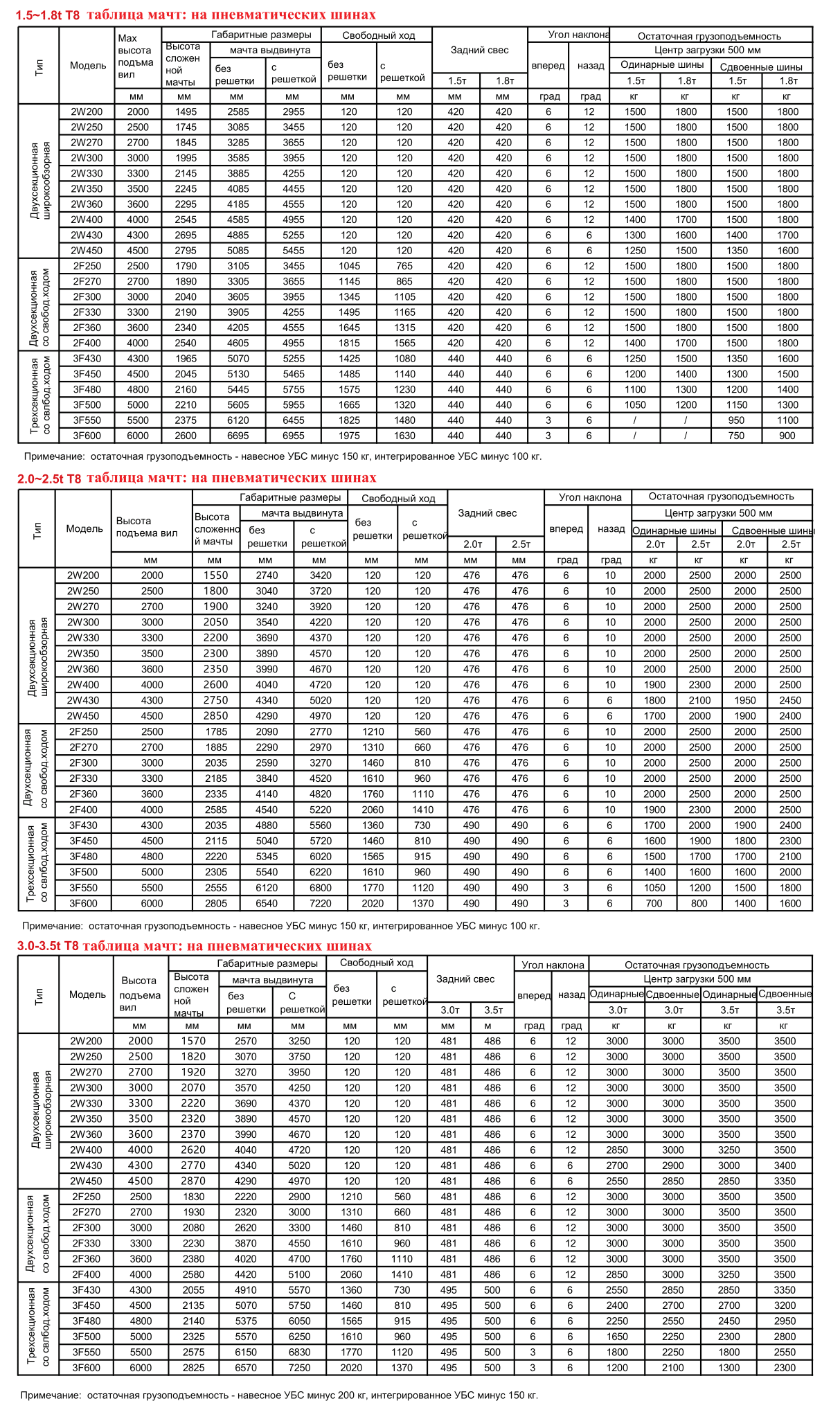 - Трехсекционные мачты (триплекс) с вагонным типом свободного хода, обеспечивающие выполнение сложных задач, включая работу в ограниченном пространстве, внутри автотранспорта и контейнеров.