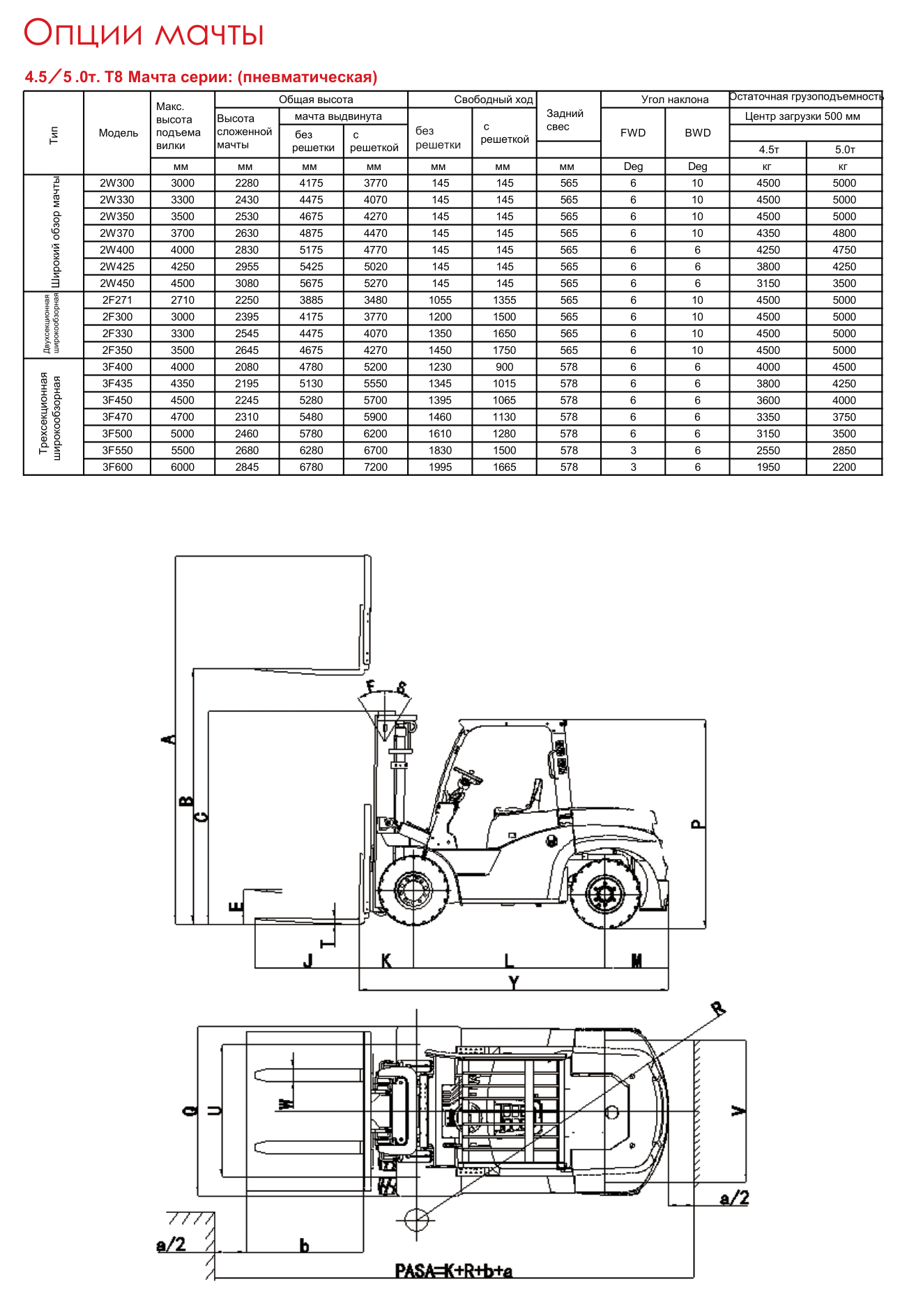 Варианты мачтПогрузчики серии T-8 предлагаются с двумя типами мачт:
