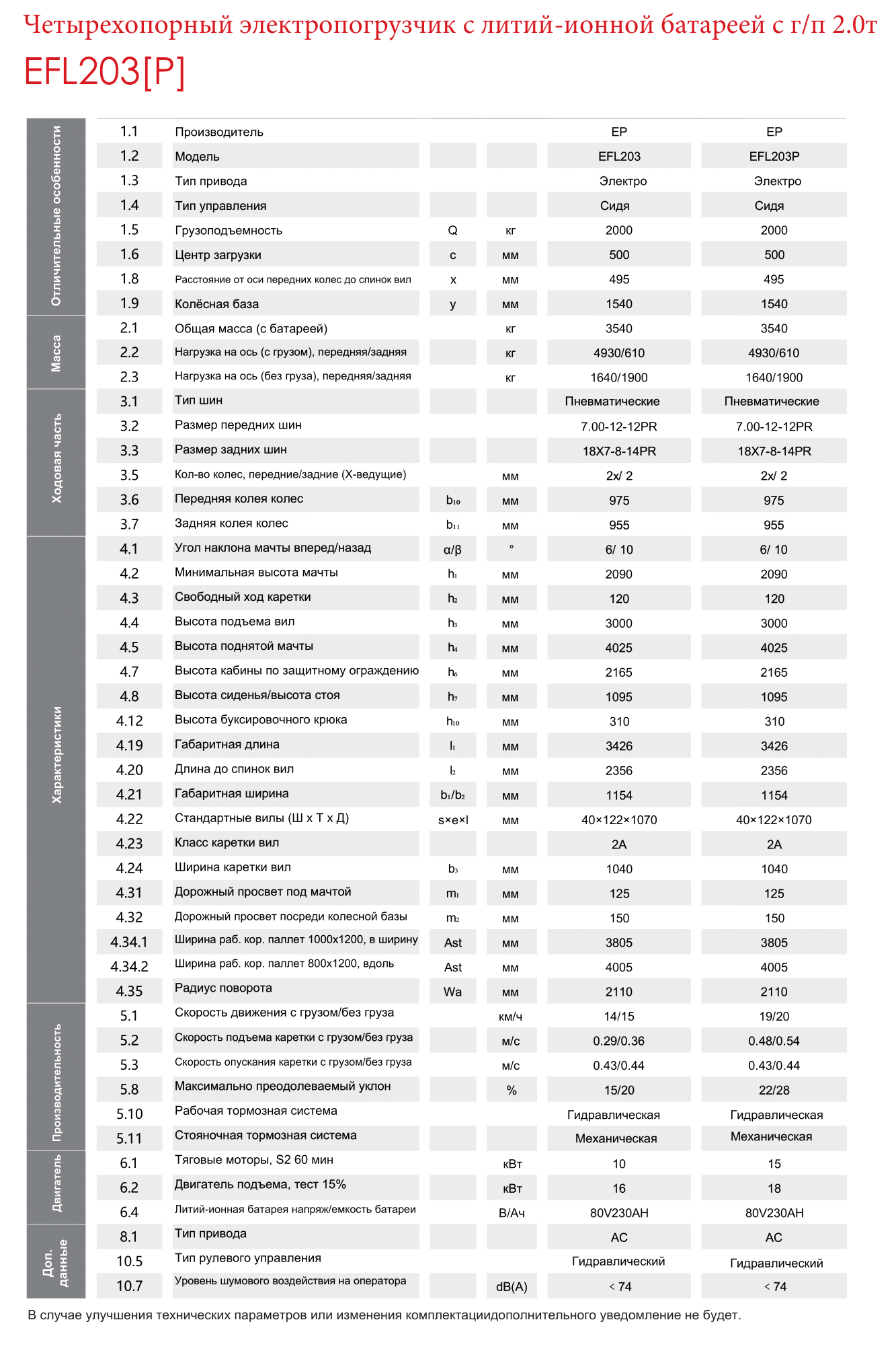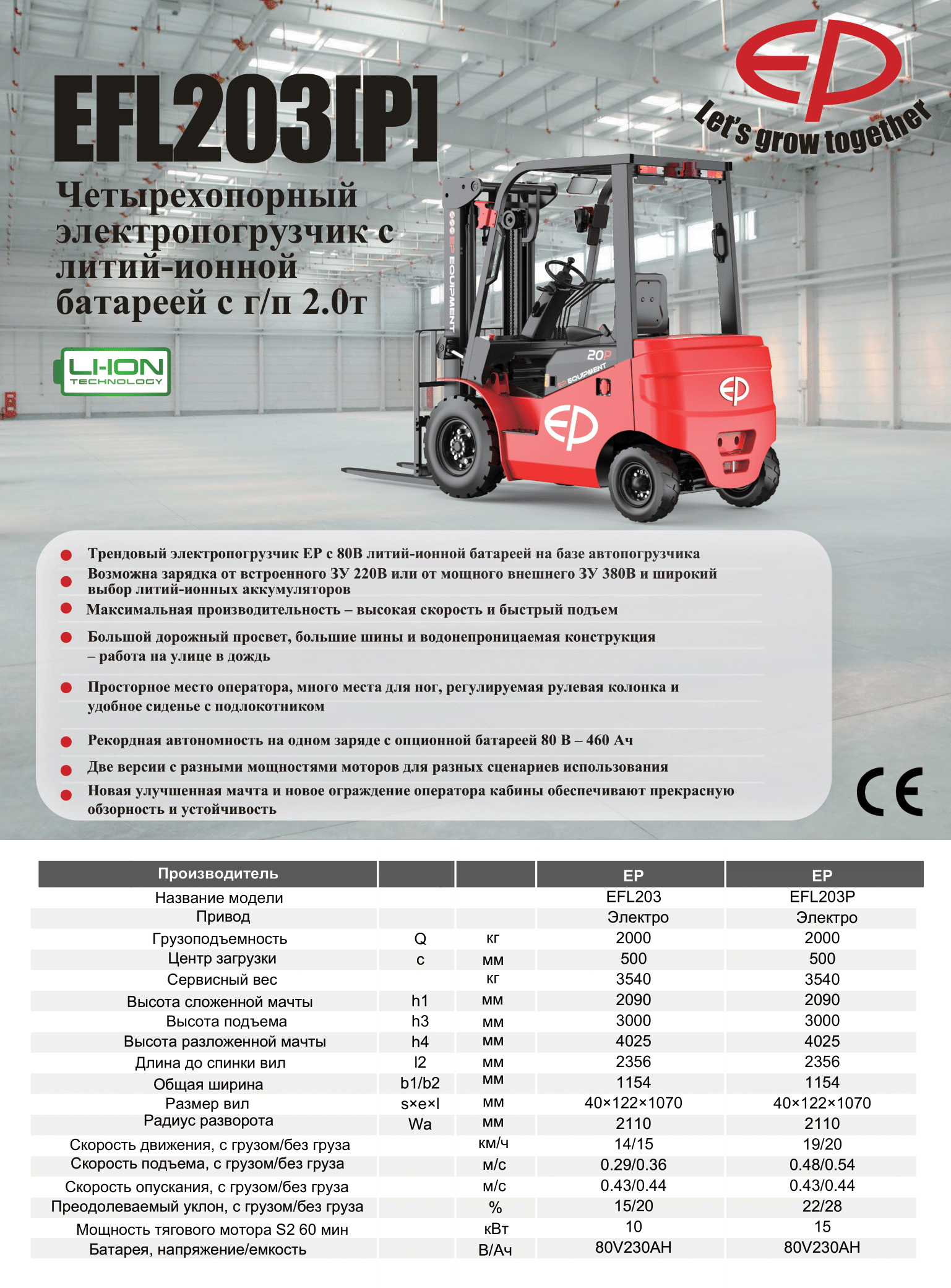 Компания EP Equipment представила новый электропогрузчик EFL203(P), который претендует на лидерство среди моделей с грузоподъемностью до 2 тонн.