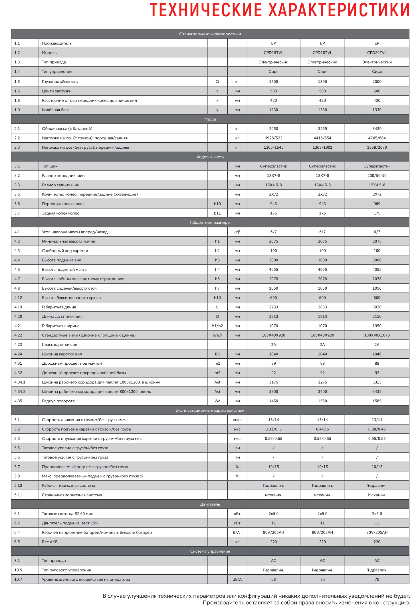 Двигатель: Асинхронный электропривод переменного тока. Гарантирует плавность хода, высокую скорость перемещения и производительность при интенсивных нагрузках. Некоторые модели оснащены двумя двигателями (5.02 кВт), обеспечивая ещё большую мощность и ускорение.