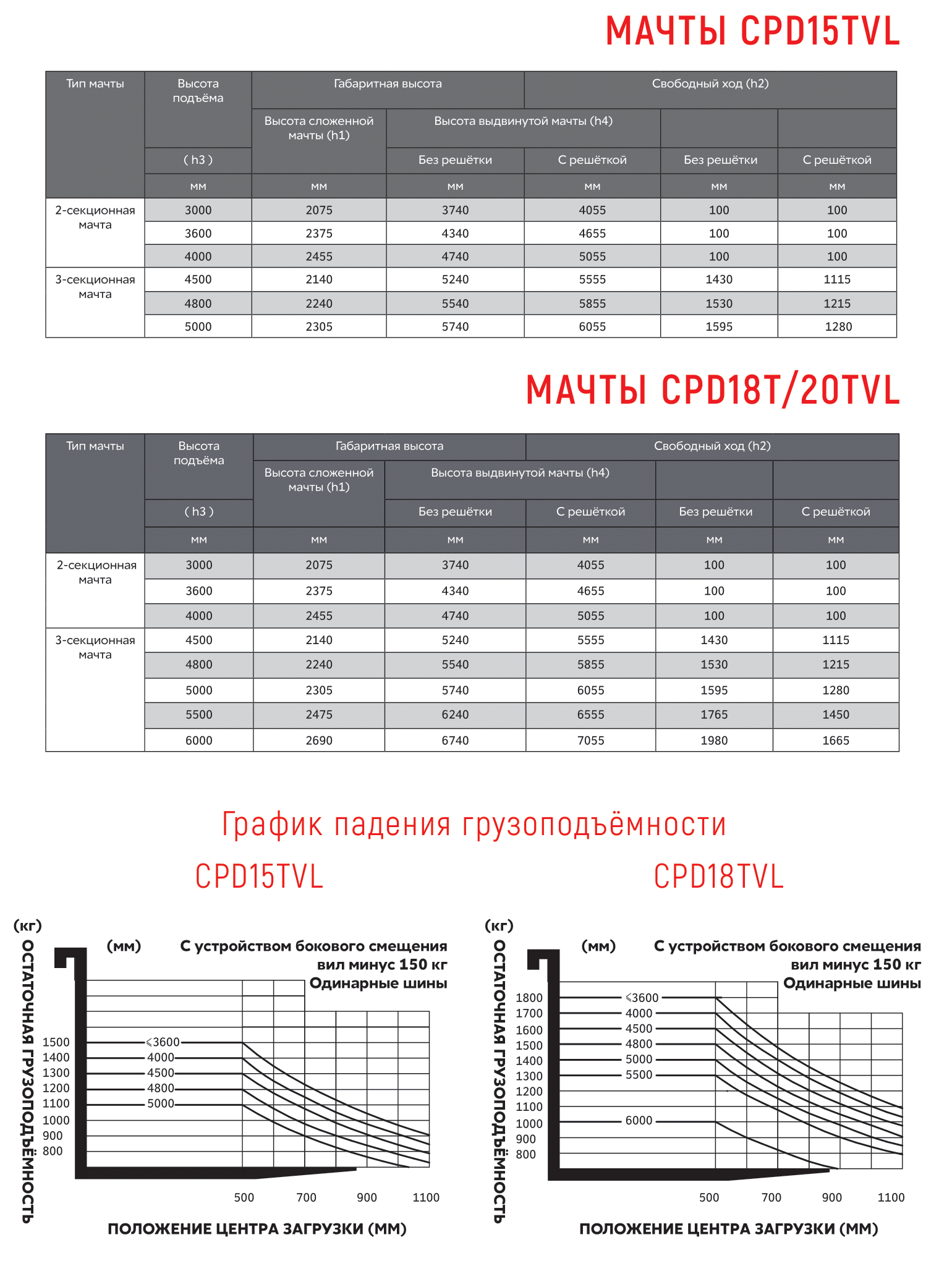 Трехсекционная мачта (3F4800 или аналогичная) обеспечивает безопасное выполнение погрузочно-разгрузочных работ на значительной высоте.