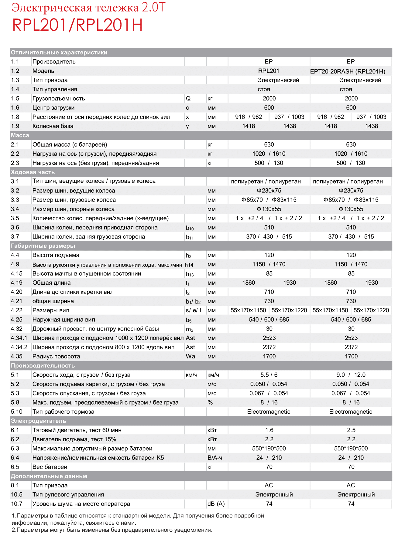 Электротележка EP Equipment RPL201H (EPT20-20RASH) за счет надежности, производительности, эксплуатационного удобства и низкой стоимости владения станет рациональным выбором для обработки грузов массой до 2 т на складах, торговых, производственных площадках.